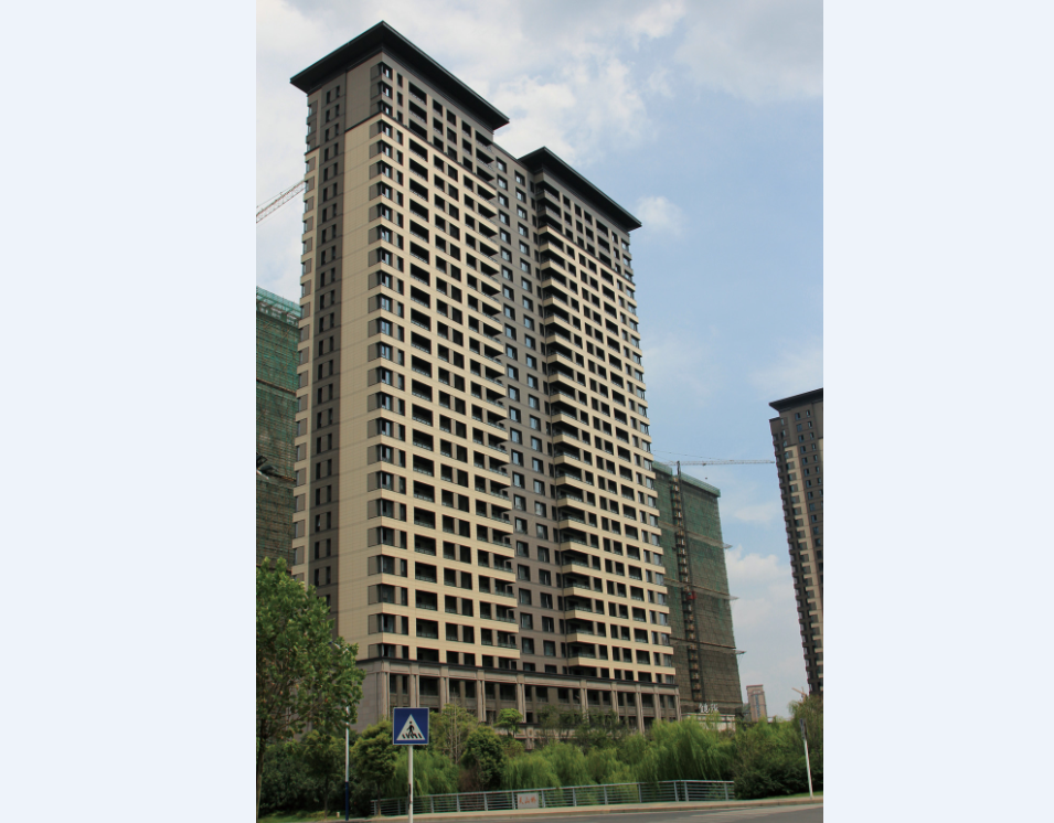 該項目位于江蘇常州市新北區(qū)飛龍西路與天山路交叉路口,項目規(guī)劃設(shè)計陶板幕墻總面積 13113.㎡,建筑物地上層數(shù)33層,總建筑面積198474.7㎡,于2013年3月竣工。項目采用樂普T18厚、由淺灰到深灰顏色相互搭配的灰色系陶板。